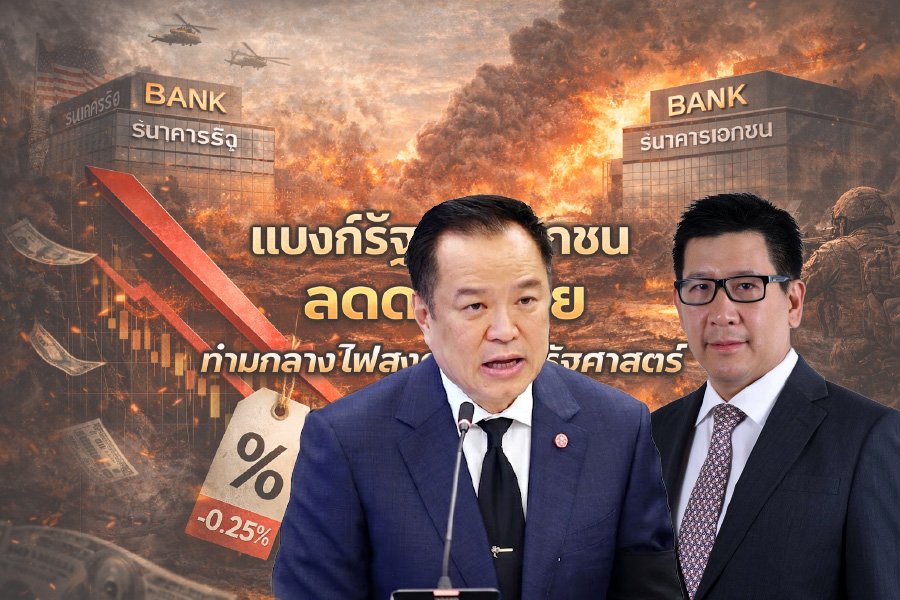 Post Views: 876 (ดอกเบี้ยขาลง 0.25% ก่อนไฟสงครามโลกใหม่? แล้วไทยจะประคองเศรษฐกิจสู้ปมเสี่ยงภูมิรัฐศาสตร์โลกอย่างไร?) “แบงก์รัฐ-เอกชน” ชิงประกาศลดดอกเบี้ยตามเกมของ กนง. ก่อนวิกฤติภูมิรัฐศาสตร์โลก หลังเกิดเหตุปะทะ “สหรัฐฯ–อิสราเอล” VS อิหร่าน โจทย์ใหญ่ที่รออยู่ อาจไม่ใช่แค่ “ลดดอกเบี้ยแล้วจะช่วยใคร?” แต่เพราะ…ไทยจำต้องเดินเกมดอกเบี้ยอย่างไร? หากราคาน้ำมันและเงินทุนโลกผันผวนรุนแรงกว่าที่คิด!!! การตัดสินใจของคณะกรรมการนโยบายการเงิน (กนง.) เมื่อวันที่ 25 กุมภาพันธ์ 2569 ที่มีมติ ลดอัตราดอกเบี้ยนโยบายลง 0.25% จาก…