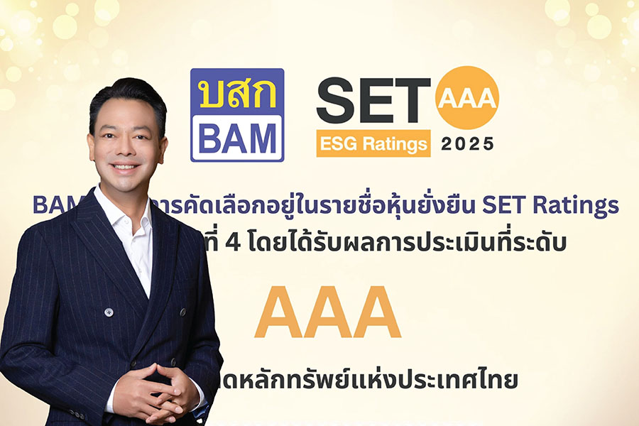 Post Views: 741 BAM ได้รับการคัดเลือกอยู่ในรายชื่อ “หุ้นยั่งยืน” SET ESG Ratings ต่อเนื่องเป็นปีที่ 4 โดยได้รับผลการประเมินที่ระดับ “AAA” ตอกย้ำการดำเนินธุรกิจที่คำนึงถึงการพัฒนาอย่างยั่งยืน บริษัทบริหารสินทรัพย์ กรุงเทพพานิชย์ จำกัด (มหาชน) หรือ BAM คว้าเรตติ้งหุ้นยั่งยืน ในระดับ “AAA” ซึ่งเป็นระดับสูงสุด จากการประกาศผลหุ้นยั่งยืน SET ESG Ratings ประจำปี 2568…